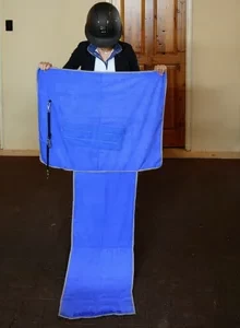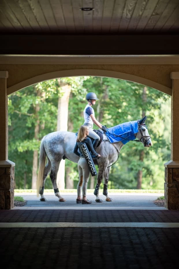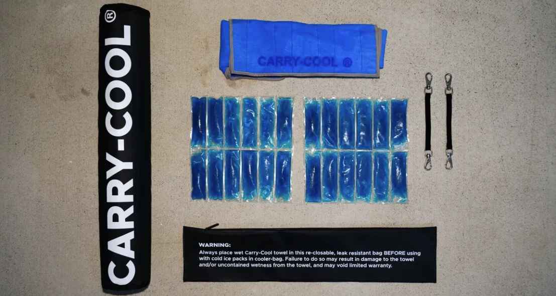 The EquiSources® Carry-Cool® Sport Horse Cooling Kit was specifically designed to lower the elevated body temperature of a hot horse. The EquiSources® Cooling Kit features these key parts: (1) super, absorbent wrap designed from PVA material, (1) insulated cooler tube, (1) water-resistant sleeve, (2) elastic straps, and (2) custom ice packs. The patent-pending, contoured design adjusts to your horse’s neck and body, with removable attachment straps that allow for use while wearing tack. Carry-Cool® is the ideal, portable solution for effective cool down treatment