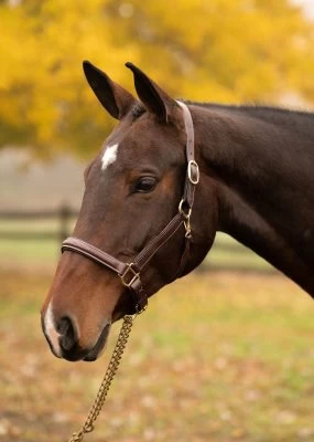 The most popular show halter, the Kate is a Brown padded leather halter, with fancy stitching across the noseband and solid brass fittings.