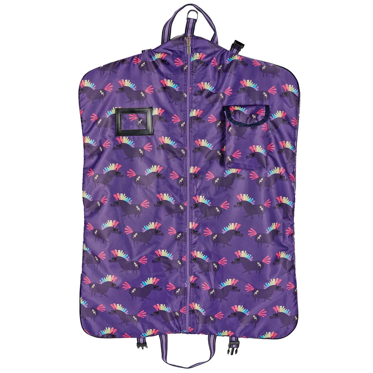 Lined with cushioning to protect your garments. Fold-over clip and shoulder strap for comfortable carrying. Outside pocket and name tag window.