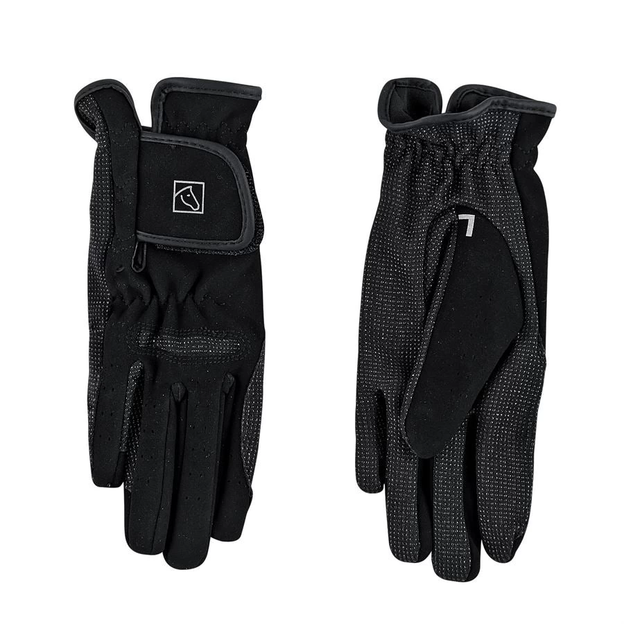 This glove offers good grip with pimpled rubber on the palm and rein contact areas. An area over the knuckle is elasticized for comfort. An “L” and “R” on the base of left and right thumbs ensure easy identification. An economical, durable and comfortable riding glove!